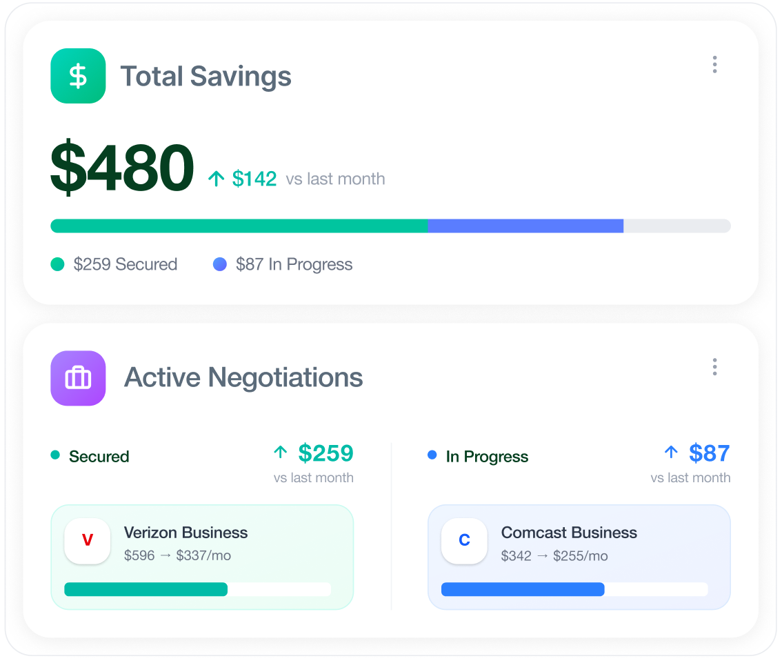 Negotiations are typically completed within one month, with savings applied to your next billing cycle.
