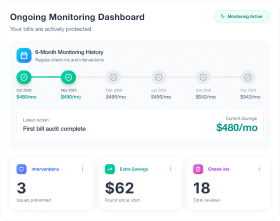We monitor your bills every month, catch overcharges, and prevent future billing issues.